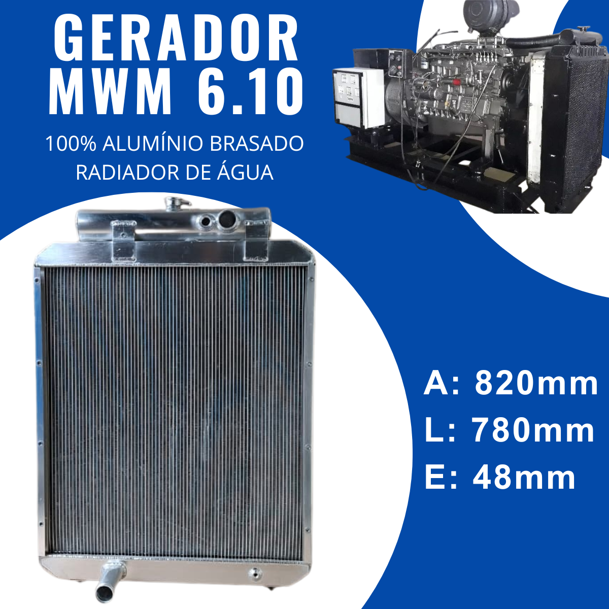 Radiador de água estacionário desenvolvido para garantir refrigeração eficiente e estável em geradores equipados com motores MWM 6.10T e 6.10TCA. Fabricado em alumínio brasado, oferece excelente desempenho térmico, sendo ideal para aplicações contínuas e ambientes que exigem alta confiabilidade operacional.